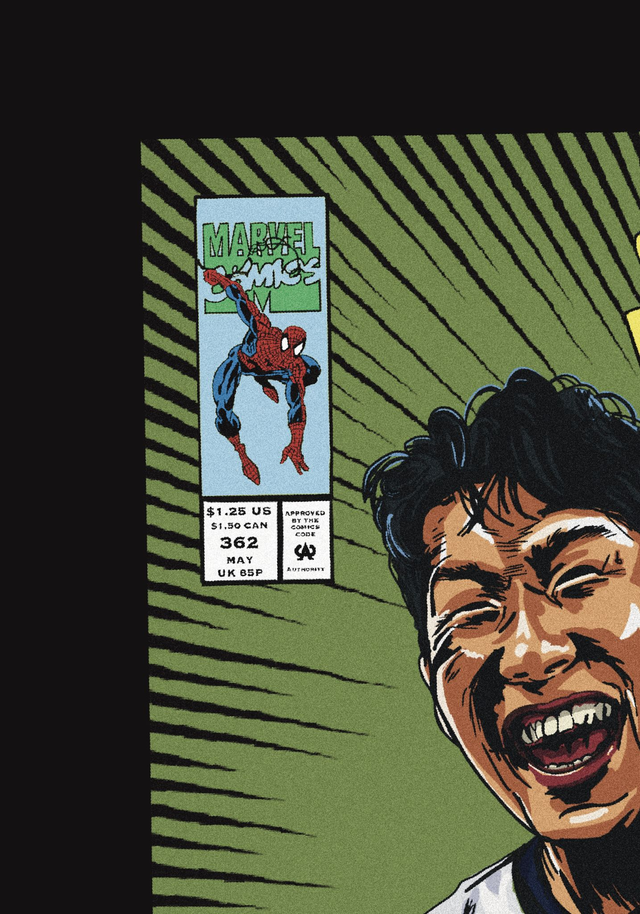 Son Heung-Min (Sonny) was a Spurs legend and ended his glittering Tottenham Hotspur career by lifting the Europa League trophy in Bilbao in 2025. I was lucky enough to be there for that magical moment. As a tribute to Korean legend, I have painted a comic book style poster for any Sonny or Spurs fan to hang on their wall. Inspired by that famous night in Bilbao and Sonny’s love for Spider-Man and comics, Here he is quite rightly Captain Marvel.